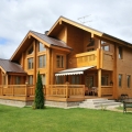 На самом деле достоинств у дома из профилированного клееного бруса очень много. Во-первых, данный материал не дает усадки и позволяет изготавливать большепролетные сооружения. Его использование позволяет забыть о риске возникновения трещин и неприглядных деформаций. Прочность зданий, сооруженных с применением описываемого древесного материала, считается повышенной, а значит, постройки будут стоять не одно столетие. За счет того, что качество лицевых поверхностей профилированного клееного бруса максимально высокое, дома получаются элитными, дорогими и красивыми. Меньшая теплопроводность правильно обработанного дерева позволяет экономить на обогреве помещения и дарит возможность жить в уютном и теплом коттедже. За счет того, что гребни и пазы по длине бруса надежно фиксируются в стенные элементы и совсем не пропускают влагу, застройщику не нужно приобретать уплотнительные материалы. Угловые же соединения являются влагонепроницаемыми и точными.